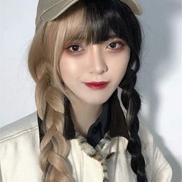 Korean Style Wig Womens Lolita Liu Qi Long Straight Hair Black Linen Color Yin Color Wig Chemical Fiber Caps A Generation Of Fat
