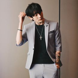 2019 British Style Trend Summer New Solid Color Sleeves Suit Suit Male Korean Version Of The Slim Fashion Hair Stylist